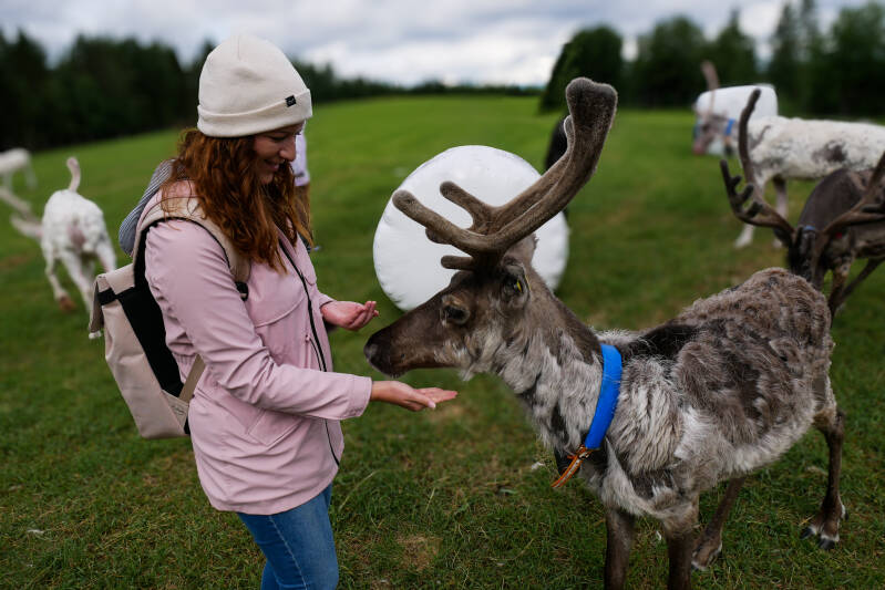 - Rentiere besuchen: Zu Finnland gehören einfach Rentiere und deshalb sollte man sich einen Farmbesuch nicht entgehen lassen. Im Sommer sind zwar die meisten Tiere in der freien Wildbahn unterwegs, aber man erhält so viele interessante Informationen und kann trotzdem ein paar der Tiere besuchen. Allgemein sollte man wissen, dass es keine wilden Rentiere gibt. Jedes Tier gehört zu einer Farm und wird zum Winter wieder eingesammelt bzw. wandert selbst nach Hause zurück. Wir besuchten die Rentierfarm Kujala. Hierfür kann man ganz einfach online auf der Website einen Termin buchen. Wir erhielten eine sehr schöne Führung und konnten die Tiere hautnah erleben.