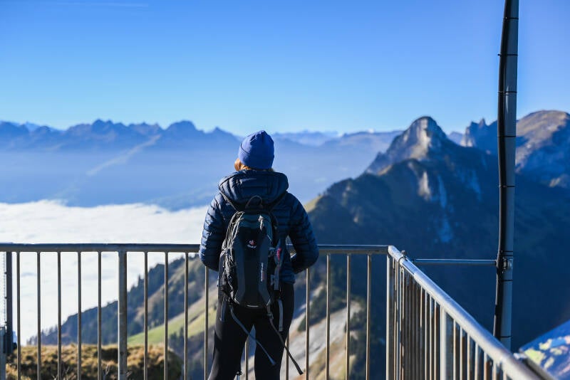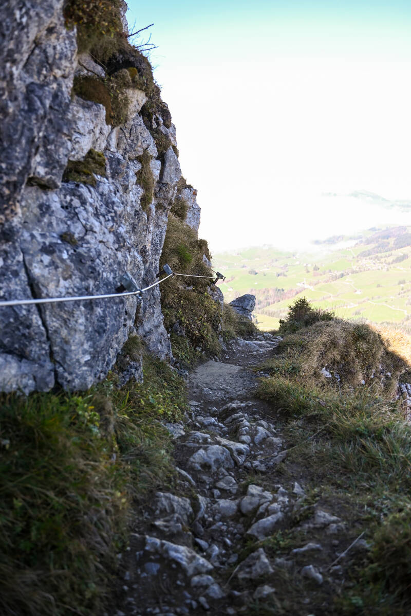 Diese eindrucksvolle Alpinwanderung sollten Bergbegeisterte unbedingt ausprobieren. Sie bietet einen wunderschönen Blick ins Rheintal und ins Alpsteingebirge. Wir starteten unsere Wanderung mit der Seilbahn zum Hohen Kasten. Der Preis für eine einfache Fahrt lag pro Person bei ca. 30€ und dauert ungefähr 8 Minuten. Wir hatten Glück und erwischten gleich die nächste Gondel. Die Fahrt wurde von einem freundlichen Mitarbeiter begleitet, welcher uns einiges erzählte. Leider war die Aussicht etwas mau, da die Gondel auch wirklich bis zum letzten Platz gefüllt wurde und man eng beieinander stand.