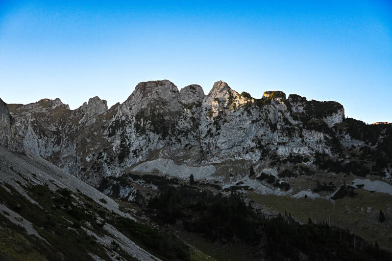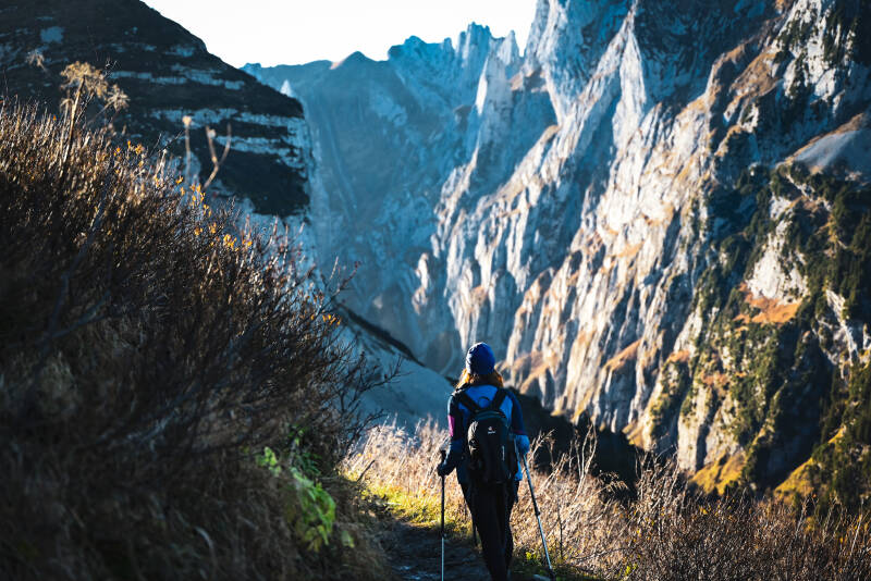 Und schließlich erblickten wir das absolute Highlight unserer Wanderung - die Saxer Lücke. Die späte Nachmittagssonne brachte sie noch mehr zum Strahlen und unser verspäteter Start hat zum ersten Mal auch einen Vorteil, denn wir waren trotz Wochenende fast alleine.
